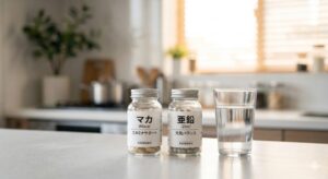 マカは南米アンデス山脈の過酷な環境で育つアブラナ科の植物で、アルギニンをはじめとするアミノ酸やミネラルが豊富です。一方、亜鉛は体内の300種類以上の酵素に関わる必須ミネラルであり、特に男性の健やかなコンディション維持に欠かせません。これらを併用することは、いわば「土壌を整える(マカ)」ことと「種をまく(亜鉛)」ことを同時に行うようなものです。マカに含まれる栄養素が、亜鉛が関与する合成プロセスをサポートするため、単体で摂取するよりも多角的なアプローチが可能になります。